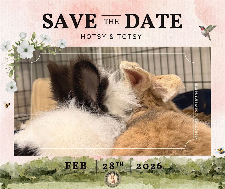 Join us in celebrating the most adorable love story of the season as Hotsy & Totsy hop down the aisle! Join us at Paws at the Mall on Saturday February 28th from 5:30pm-7pm for an evening filled with love, fun, and a meadow full of friends.