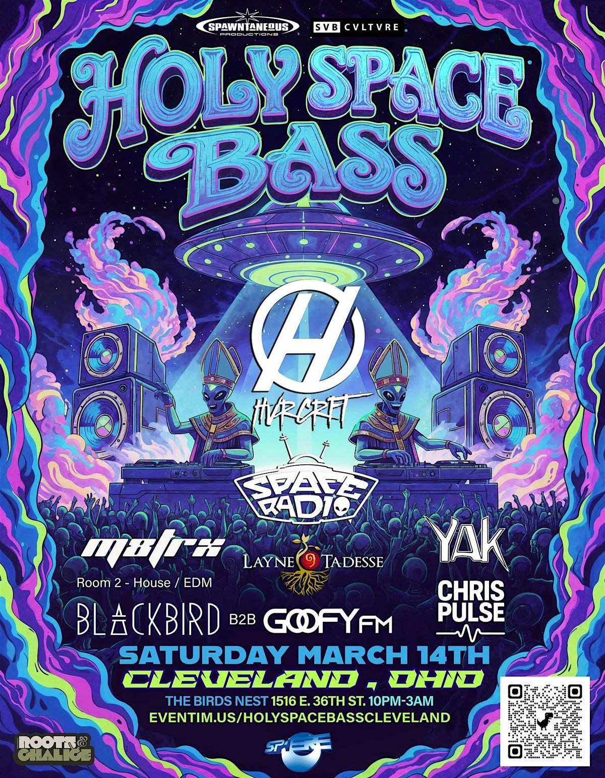 The Holy Space Bass tour is inavding Cleveland on Saturday March 14th, featuring HVRCFT, Space Radio and more!!