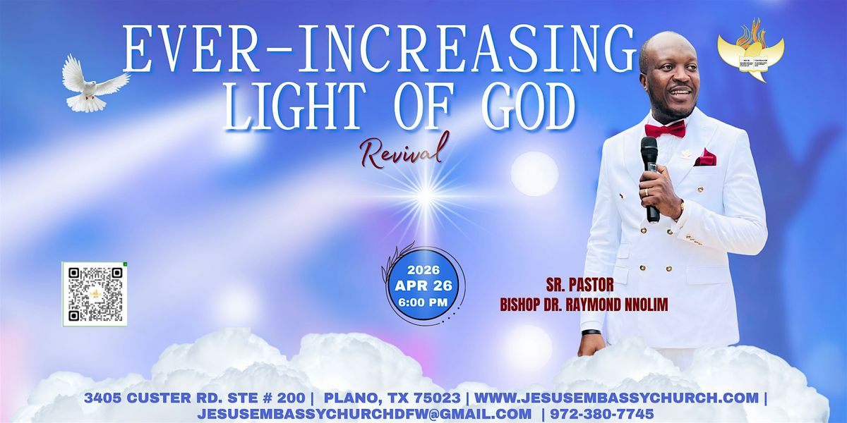 Come and experience the power of the Holy Spirit at Holy Fire For All Nations Ministry, the outreach ministry of Jesus Embassy Church! This in-person event is a time of refreshing and renewal. Join us for uplifting worship, inspiring message from the unadulterated Word of God and life-changing encounters with God. Whether you're seeking a deeper connection with the Holy Spirit or seeking encouragement in your Christian Walk, this revival is for you! Open to all ages, backgrounds, and denominations. Don't miss this opportunity to encounter God's presence in a powerful way. Mark your calendars and invite your friends and family to join us at the Holy Spirit Revival!