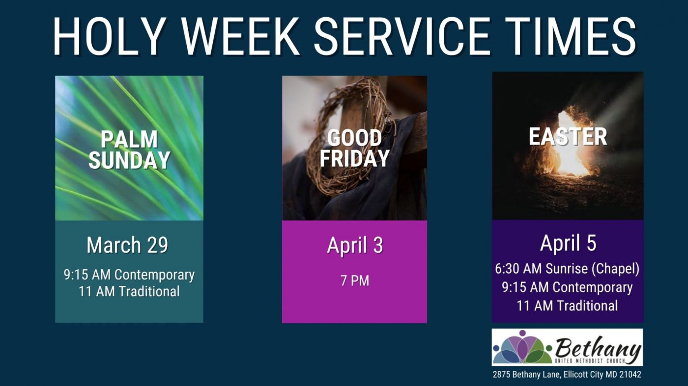 Whether Bethany is your church home or you're simply looking for a place to worship during Holy Week, you are warmly invited to join us. All are welcome.