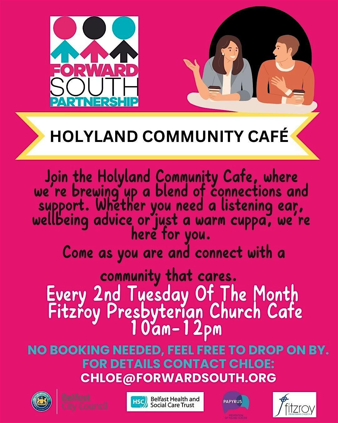 Join the Holyland Community Cafe, where we’re brewing up a blend of connections and support. Whether you need a listening ear, wellbeing advice or just a warm cuppa, we’re here for you.