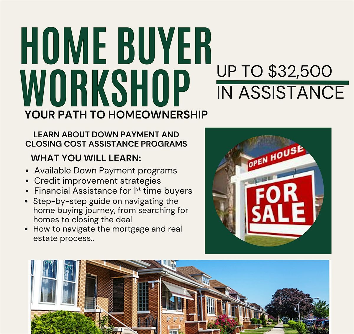 Additional Information: The workshop encourages attendees to take charge of their financial futures, whether through purchasing a home or investing in real estate. This workshop could provide the insights and tools you need to successfully navigate the process.