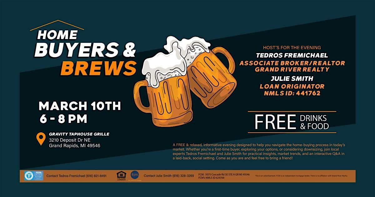 Home Buyers & Brews is a free & relaxed, informative evening designed to help you navigate the home-buying process in today’s market—paired with great local brews and food. Whether you’re a first-time buyer, exploring your options, or considering downsizing, join local experts Tedros Fremichael, Associate Broker/Realtor, and Julie Smith, Loan Originator, for practical insights, market trends, and an interactive Q&A in a laid-back, social setting. Come as you are and feel free to bring a friend.