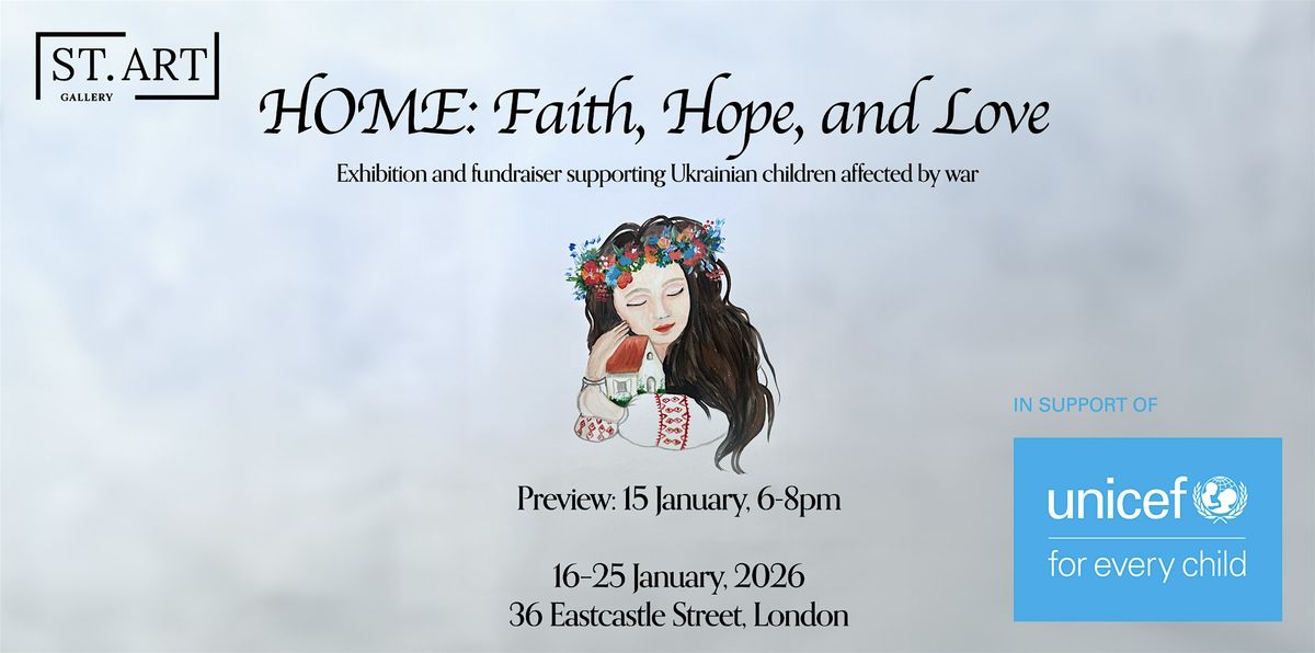 Home: Hope, Faith, and Love is a fundraising exhibition presenting artworks created by children affected by the war in Ukraine.
