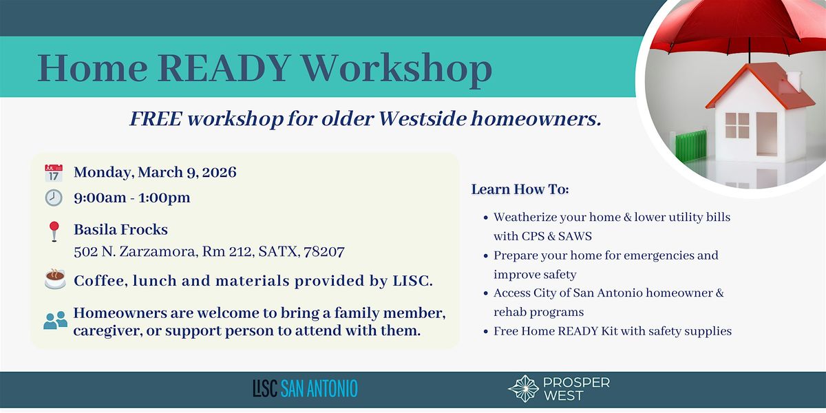 The Home READY Workshop is a free, in-person workshop designed for older homeowners on San Antonio’s Westside, particularly those living near the proposed VIA Silver Line corridor along Commerce and Buena Vista.