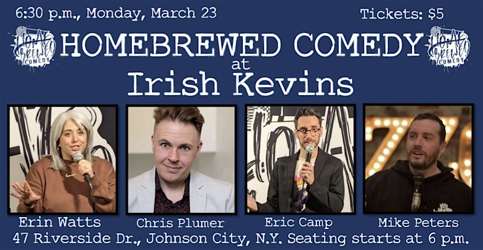 The laughter is coming to Johnson City when Homebrewed Comedy hits the stage at Irish Kevins on Monday, March 23. Chris Plumer is headlining the show and Eric Camp and Erin Watts are joining host Mike Peters.