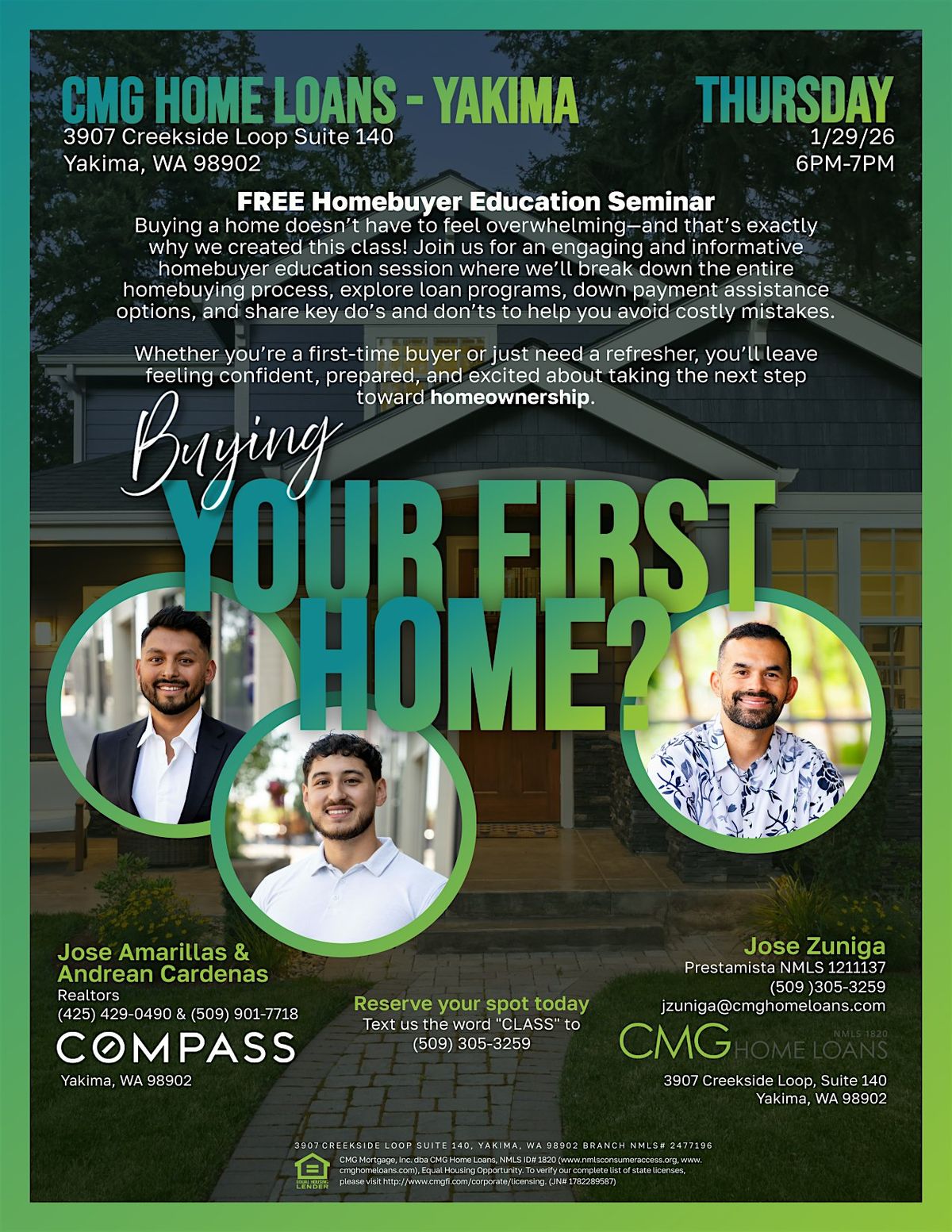 Be sure to join us on January 29, 2026 from 6:00 PM to 7:00 PM for our FREE Homebuyer Education Class. This free event is open to the public, perfect for anyone who wants to learn about the homebuying process, including tips on how to prepare yourself for homeownership and taking care of your credit.