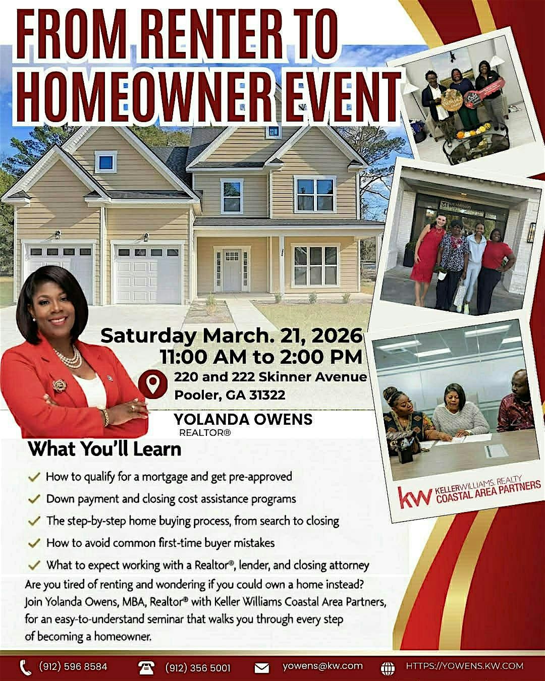 Dreaming of owning a home? Join our Renter to Homeowner Event on March 21 in Pooler, GA and learn the path to homeownership!