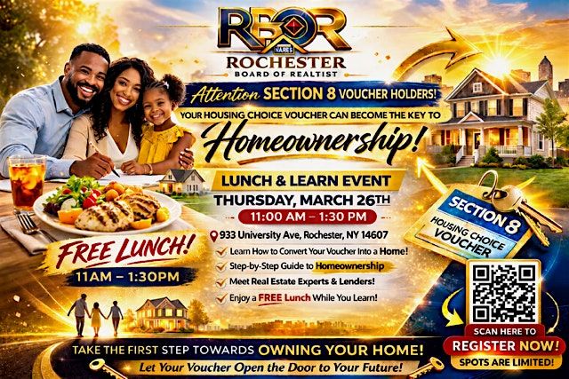 Ready to dive into the world of homebuying? Come hang out with us in person for a casual lunch and learn session where you'll get the scoop on everything you need to know before buying your first home. Bring your questions, grab some tasty food, and leave feeling confident and supported about your next big step. Don’t miss out on this fun and informative free event! Section 8 Voucher holders, veterans and essential workers are Welcome. Leave with a Pre-Approval or Purchase Plan on the spot!!