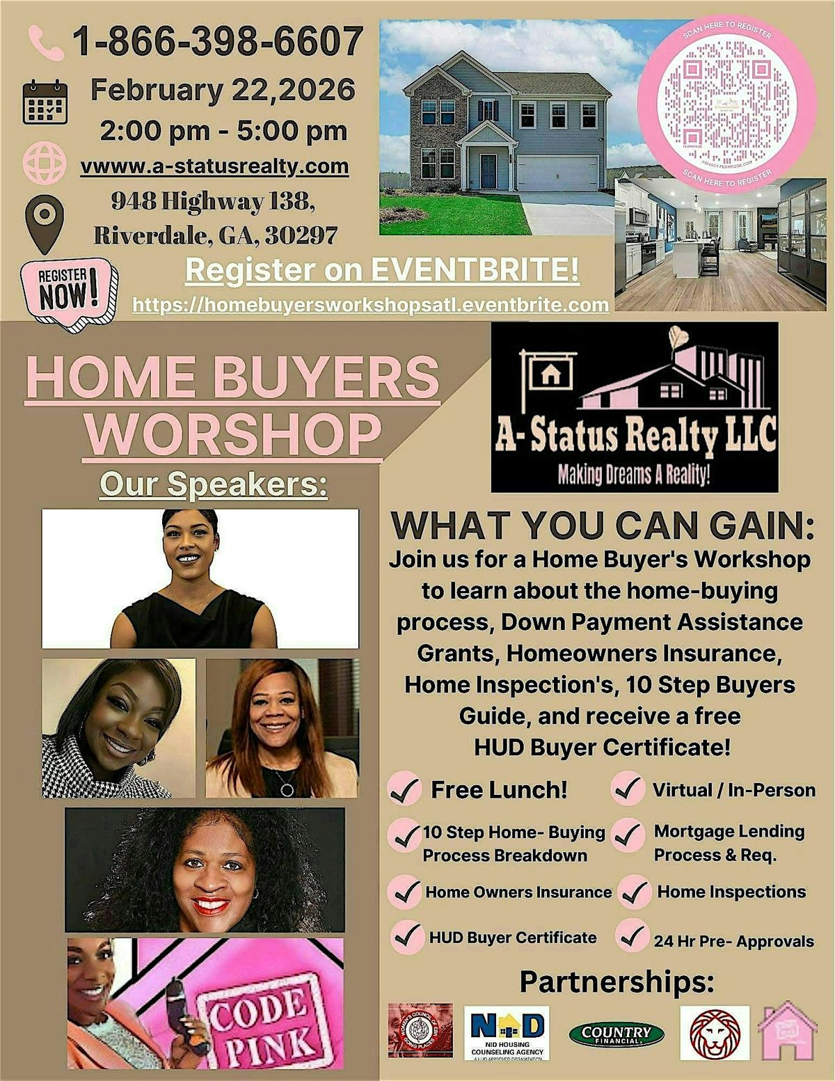 Thinking about buying your next home? 🏡 This in person and online workshop is perfect for you! We'll cover everything from budgeting to making an offer in a fun, easy-to-understand way. Connecting you with experts to get all of your questions answered—all from the comfort of your couch or come in person to get pre-approved the same day. Don't miss out on this chance to become a confident homebuyer and recieve a free HUD Buyers Certificate that all mortgage lenders require a buyer to provide before closing!