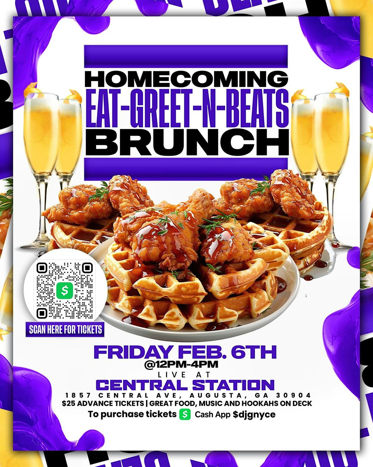 Homecoming 2026 Eat, Greet & Beats Brunch. Friday Feb 6th . Great Food , Drinks and Music. Hookahs and Mimosa’s availableAbout this Event