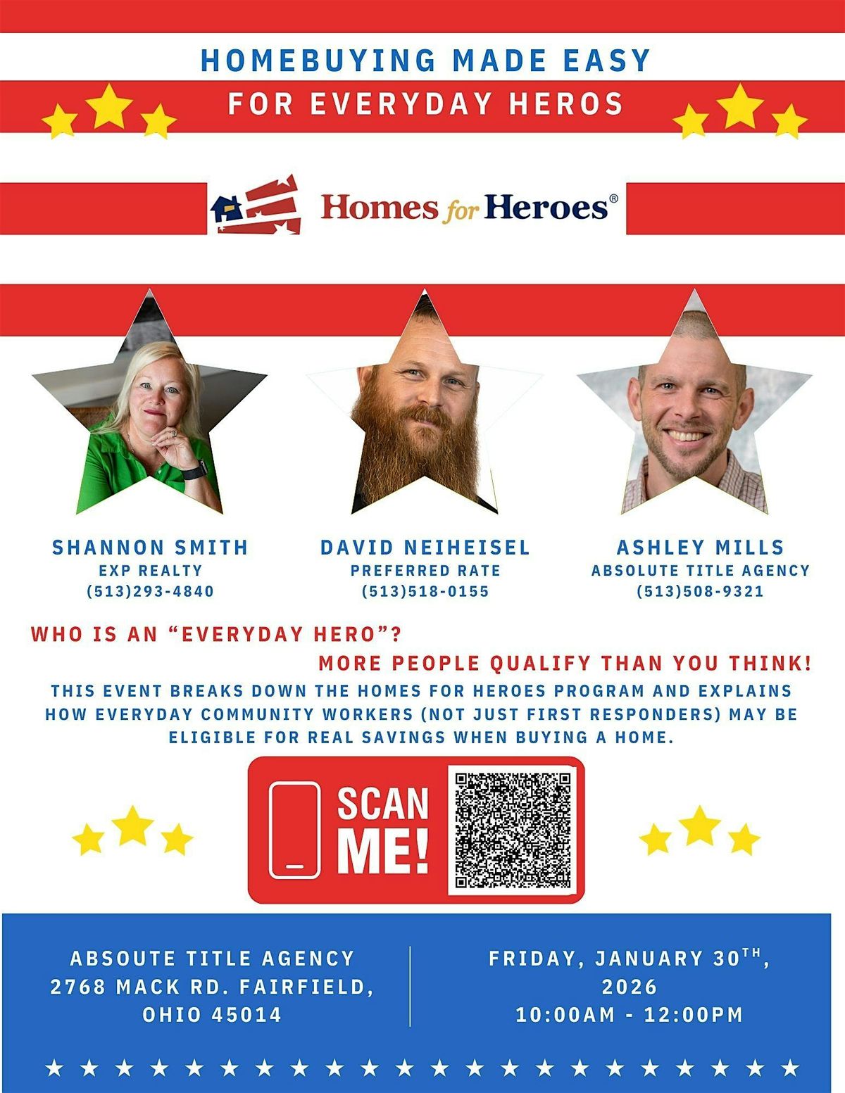Join industry professionals for an informative session on the Homes for Heroes program. This event breaks down who qualifies as an “Everyday Hero” and how eligible community workers — not just first responders — can receive real savings when buying a home. Attendees will gain a clear understanding of the program benefits, eligibility, and how to leverage these savings for clients and personal homeownership goals.