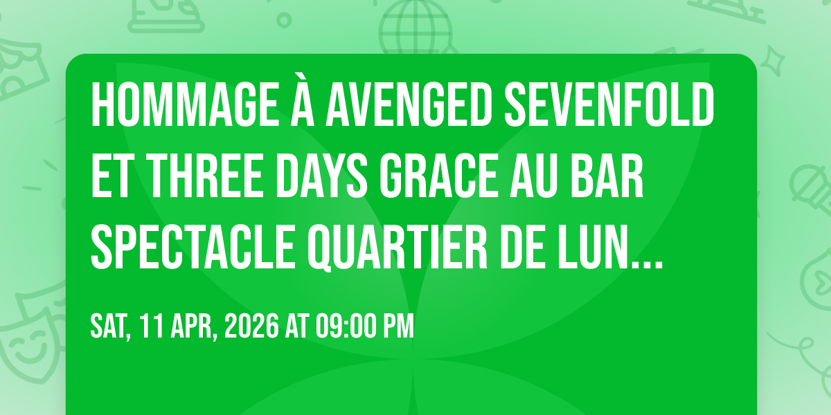 Après une salle comble vendredi le 24 octobre, une autre soirée double Hommage attend les amateurs de Heavy Metal Samedi le 11 avril avec des hommages aux groupes Avenged SenvenFold et Three Days Grace dès 21h sur la scène au deuxième étage su Bar Spectacle le Quartier de Lune.