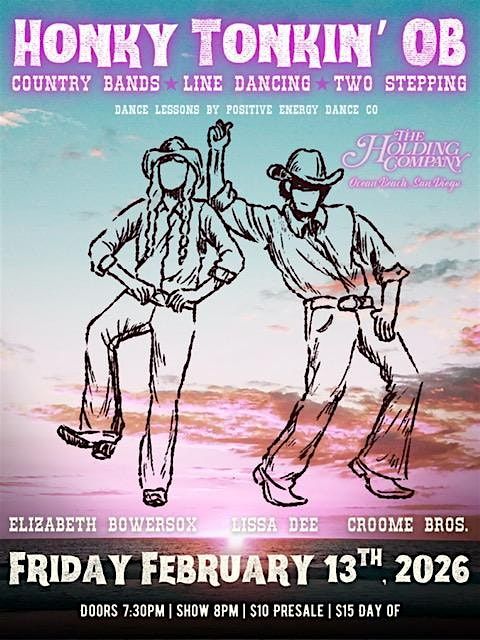 Honky Tonkin' in the OB featuring Elizabeth Bowersox, Lissa Dee and Croome Bros. Line dance lessons provided by Positive Energy Dance Co.About this Event