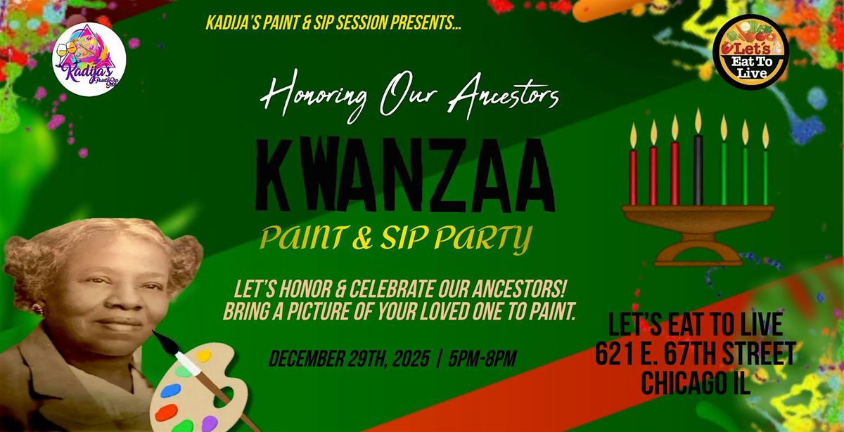 Get ready for a fun and creative night at our Honoring Our Ancestors Kwanzaa Paint & Sip Party! Doors open at 4pm. Join us on the 4th day of Kwanzaa, Ujamaa! Which means cooperative economics! Let's celebrate Kwanzaa with vibrant colors, good vibes, and tasty hors d'oeuvres . Whether you're a painting pro or just wanna have fun, this event is all about honoring culture, creativity, and community. Bring your friends, family and let’s toast to our ancestors while making art that speaks from the heart!