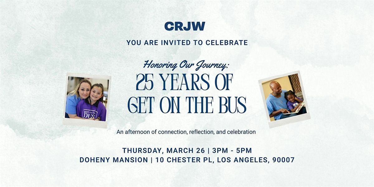 Please join us for an afternoon reception at the historic Doheny Mansion as we reflect on 25 years of impact, celebrate the power of family, and invest in the future of Get On The Bus—ensuring families can continue to find their way back to one another.