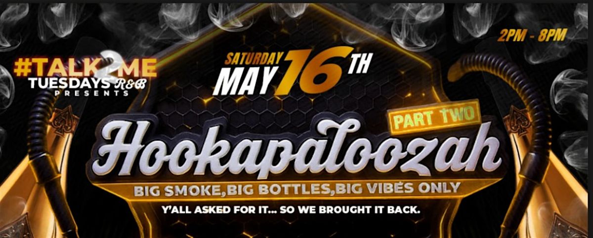Join us Saturday, May 16th from 2PM – 8PM for HOOKAPALOOZA PART 2, where the vibes are BIG and the energy is even bigger. Think hookah clouds, bottle service, sunshine, and all your favorite hip-hop & R&B jams.