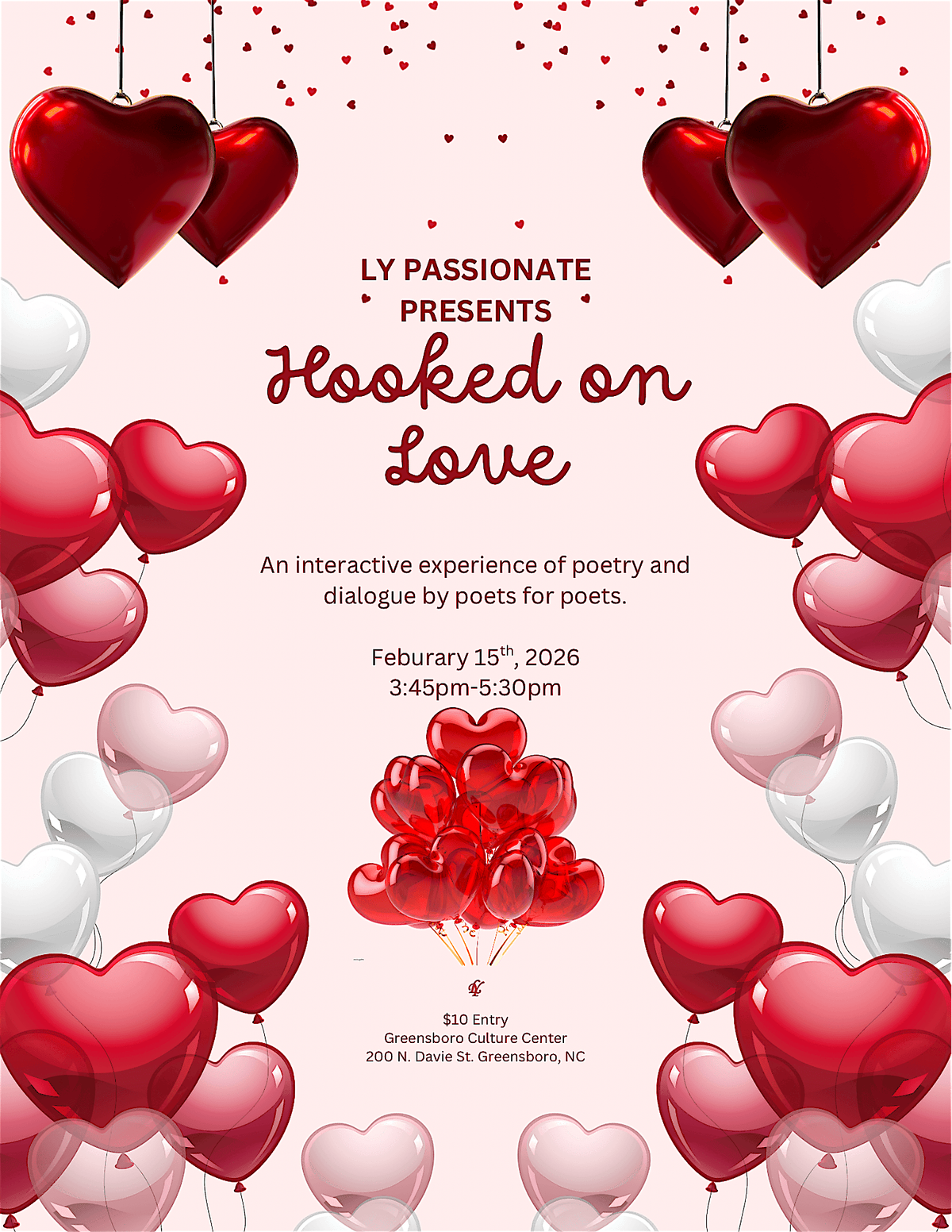 Poet inspired performance space, for concept building, and practice in room 121 at Greensboro Culture Center. Join the conversation this Valentine's Day Weekend. Share a love poem or more, and bring your special someone for the occasion.