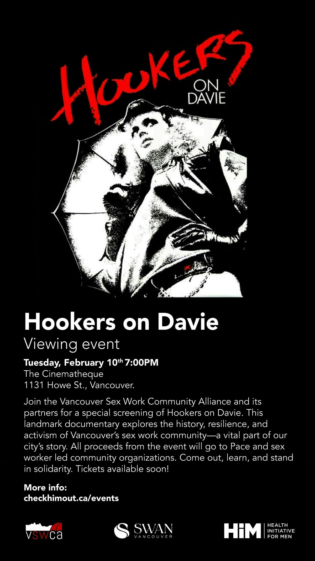Join us in person for the Hookers on Davie screening and fundraiser – come out, learn and stand in solidarity. Doors open at 6:30About this Event