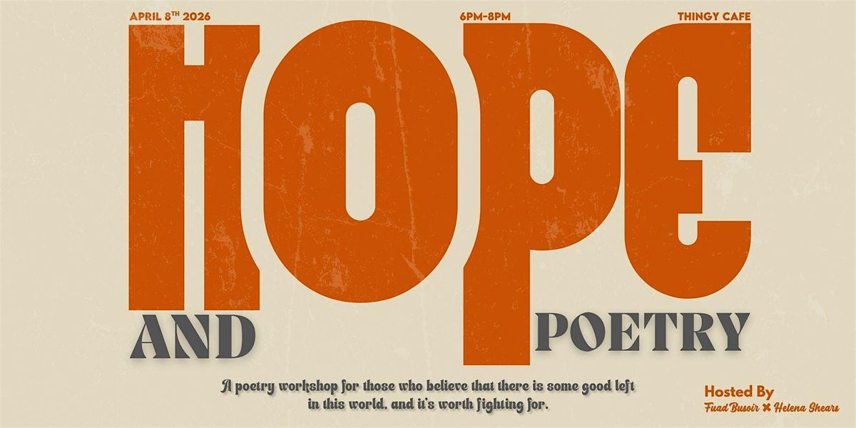 After another sold out, beautiful evening, The 'and Poetry Series' is back with a new workshop. This time we're feeling hopeful. So bring your pen and notebook and explore what it is to be human. By blending poetry and wellbeing, we look at how creativity can fuel the heart and vice versa. In the middle of Spring, what better theme to tackle than Hope? The workshop will consist of participant-led discussion, hope-themed poetry readings and prompt-based poetry writing. Our 'hope' is to build a community from these workshops, and one as diverse as possible so poet or novice, hopeful or hopeless this space is for you. Please help us to support local venues by buying snacks and drinks on site from the lovely poeple at Thingy Cafe