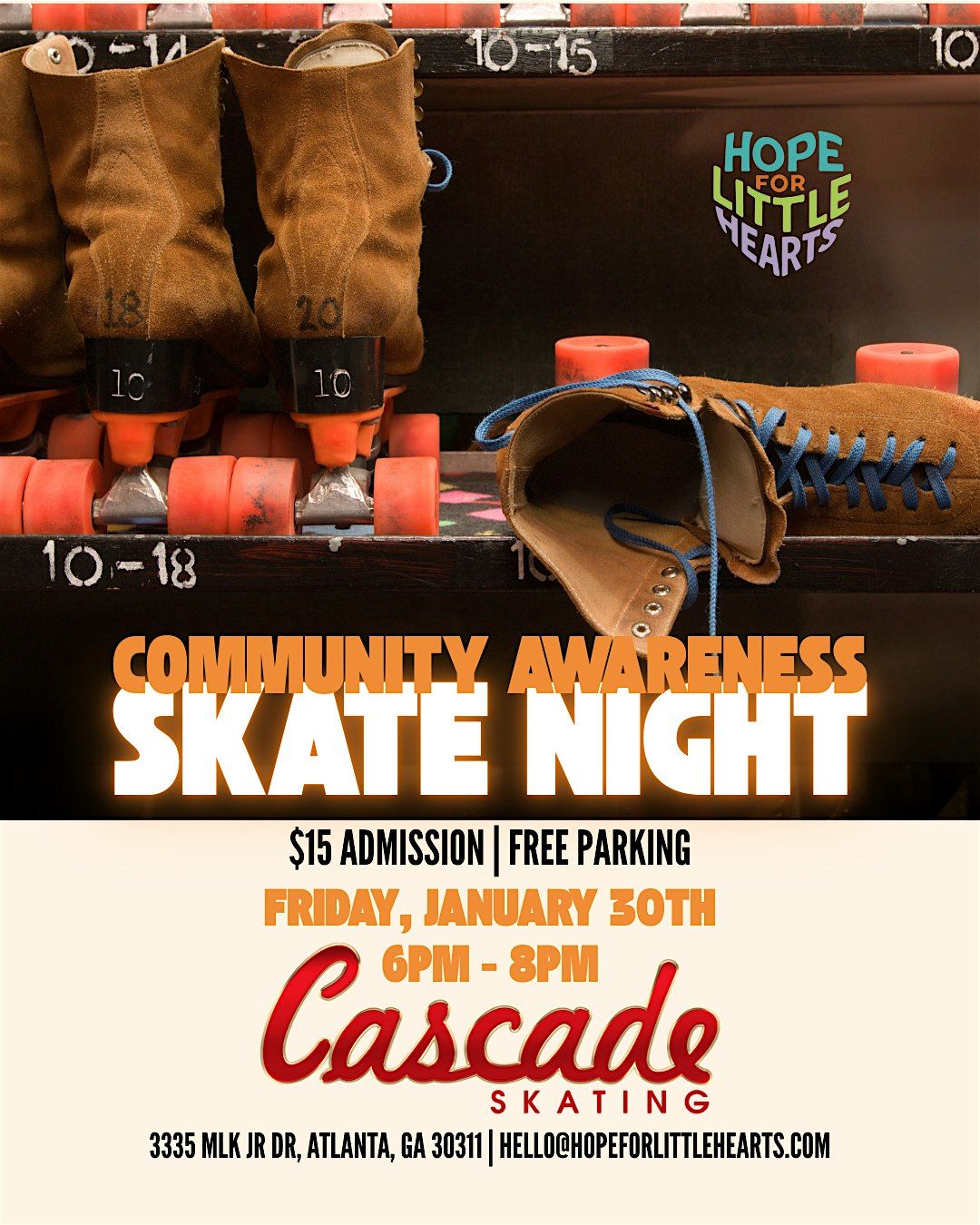 Join us for a fun-filled evening at the rink! This community skate night is all about bringing people together to support a great cause. Meet the team behind Hope for Little Hearts, learn about our mission, and enjoy some cool moves on wheels. Whether you’re a pro or just want to chill and cheer, this is the place to be. Don’t miss out on some good vibes and community spirit!