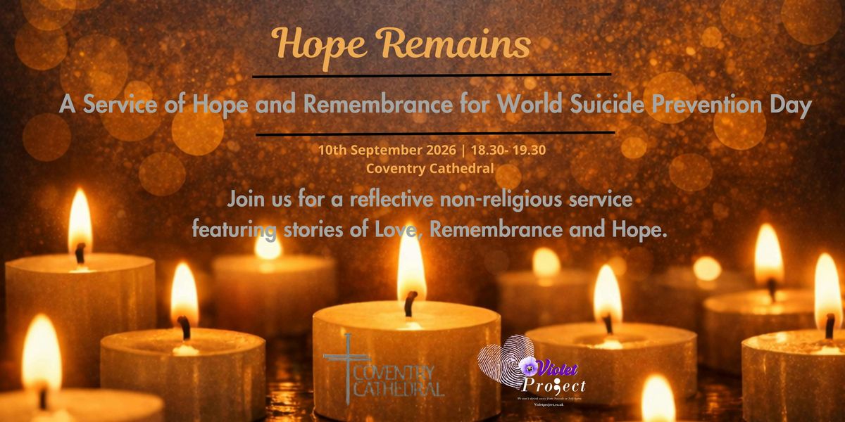 Violet Project CIO and Coventry Cathedral warmly invite you to join us in person for a free, heartfelt gathering to mark World Suicide Prevention Day.