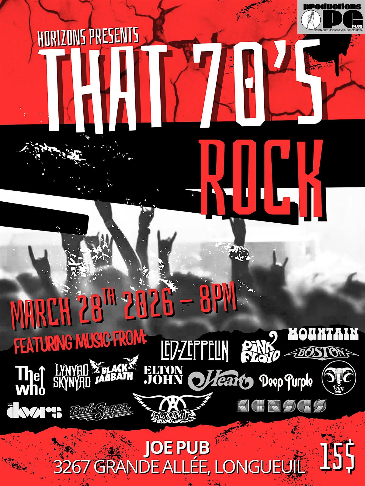 Horizons 70's rock tribute! Catch us perform songs from your favourite classic 70's rock bands. Dust off that leather jacket of yours and put on those platform shoes because we will be giving you guys some Old Time Rock & Roll