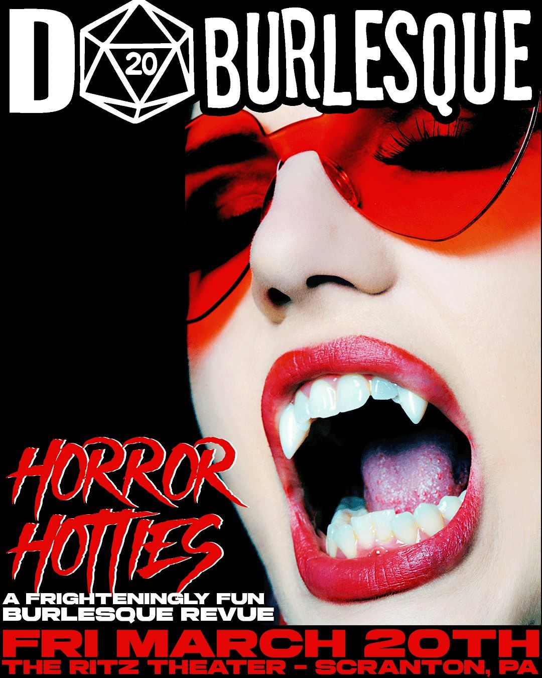 Join D20 Burlesque for a titillating tribute to horror. From film and books to classic monsters, this show blends the art of the tease with the frightening and camp history of the stories that haunt you.