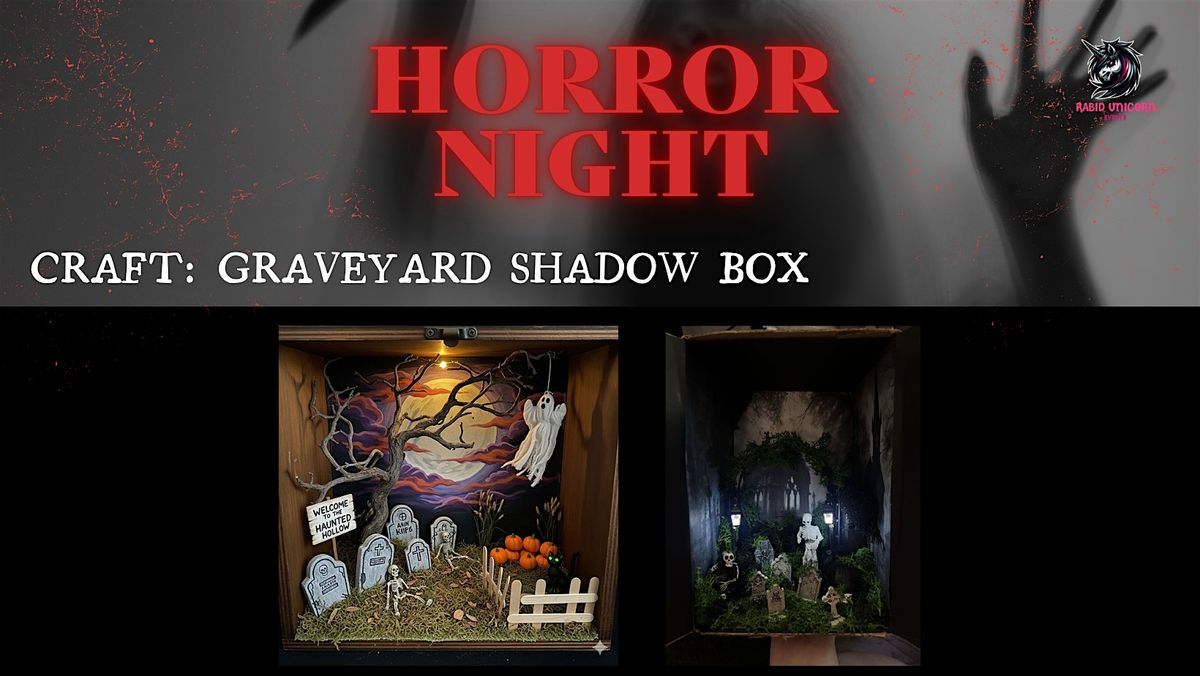 Each guest will receive a 5x5 shadow box, paints, and plenty of eerie embellishments to make it one of a kind. Want to add an extra personal touch? Bring your own little trinkets or keepsakes to make your creation uniquely yours!