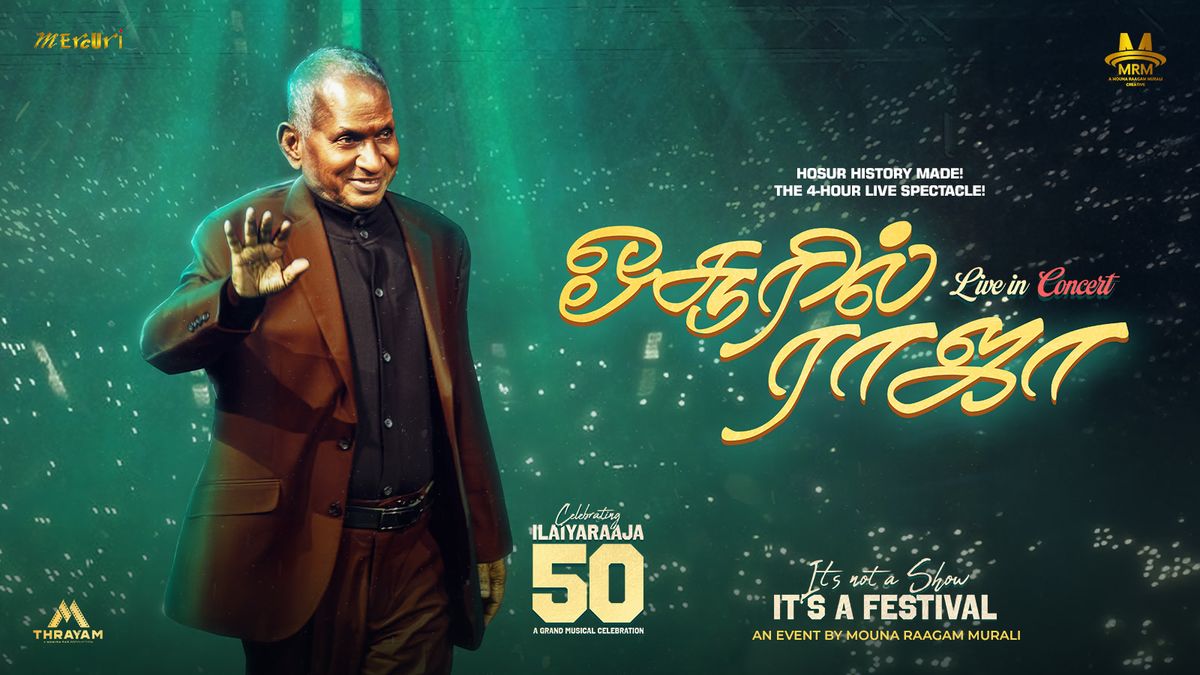 Ilaiyaraaja revolutionized Indian film music by creating symphonic compositions that seamlessly integrated Western orchestral arrangements with Indian melodies, rhythms, and instruments. His contribution to symphonic music is vast—ranging from film scores, live symphonic concerts, to original orchestral works. Through his innovative approach, he has redefined the boundaries of symphonic music, creating an emotional and auditory experience that has become his trademark. His work remains a perfect synthesis of Eastern and Western musical traditions, making him one of the greatest composers in the history of world music.People of In and around HOSUR – Get ready to witness the Isaignani Maestro Ilaiyaraja along with his mammoth orchestra and well established playback singers.For fans of Ilaiyaraaja’s music, this concert feels like a pilgrimage to the soul of Tamil cinema. The event becomes a bridge connecting generations of listeners to the rich tapestry of the Maestro’s works, be it his soulful ballads, rousing tunes, or the deeply evocative classical pieces that have become part of the cinematic landscape.With a career spanning over five decades, Ilaiyaraaja has composed more than 7,000 songs and scored music for over 1,400 films in multiple languages. His music, blending classical and contemporary styles, has redefined Indian cinema. From soul-stirring melodies to electrifying compositions, this concert will take you on a journey through his greatest hits, bringing to life the emotions and magic that only Ilaiyaraaja can create.The event will feature a world-class orchestra, renowned playback singers, and breathtaking stage production, delivering a unique musical spectacle. Fans will experience exclusive live renditions of his classics, transporting them back to the golden era of Indian cinema. The symphonic arrangements and immersive audio-visual experience will elevate the concert to new heights, creating a once-in-a-lifetime experience for every music lover.It is not just a concert but a celebration of his monumental contributions to music, encapsulating the emotional, cultural, and musical richness that has made Ilaiyaraaja an icon in the world of music.You don’t want to miss this iconic musical journey!
