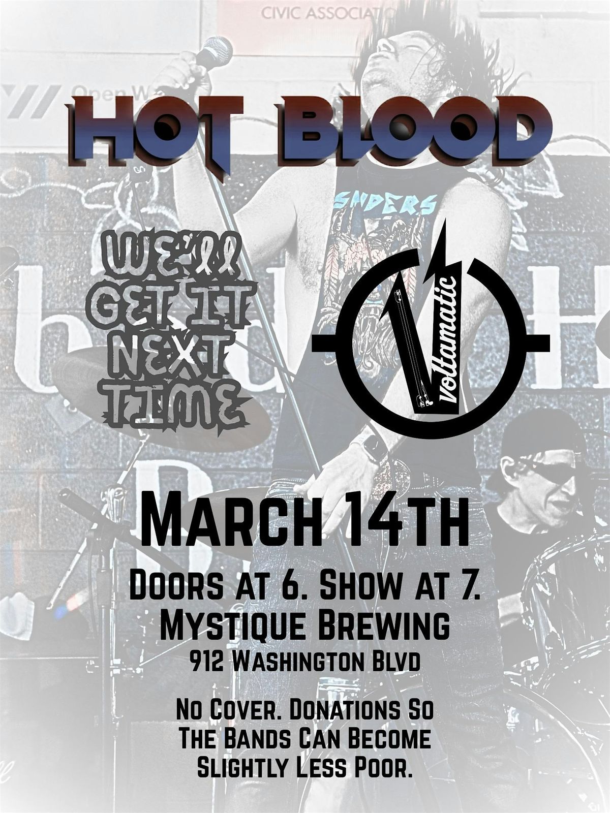 Hot Blood (Bmore Metal), Voltamatic (Bmore Punk), We'll Get It Next Time (Virginia Punk) @ Mystique Barrel Brewing (912 Washington Blvd)About this Event