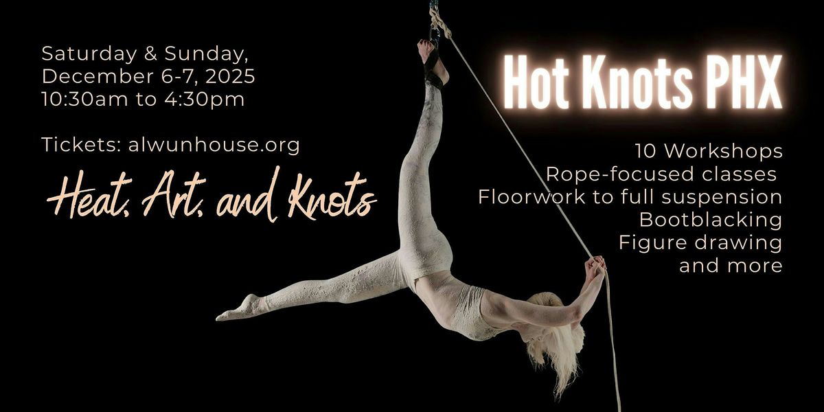Heat, art, and knots – Phoenix is about to get tied up! This intimate weekend mini-con includes 10 classes across 6 sessions, with two options per time slot, as well as a Sunday afternoon rope jam. Most classes are rope-focused, from floorwork to full suspension, with spicy extras including figure drawing, bootblacking, and more. Held outdoors in the stunning Awun House garden patios and in collaboration with their Lighthouse art gallery show, we’ll be surrounded by desert beauty while learning and playing.