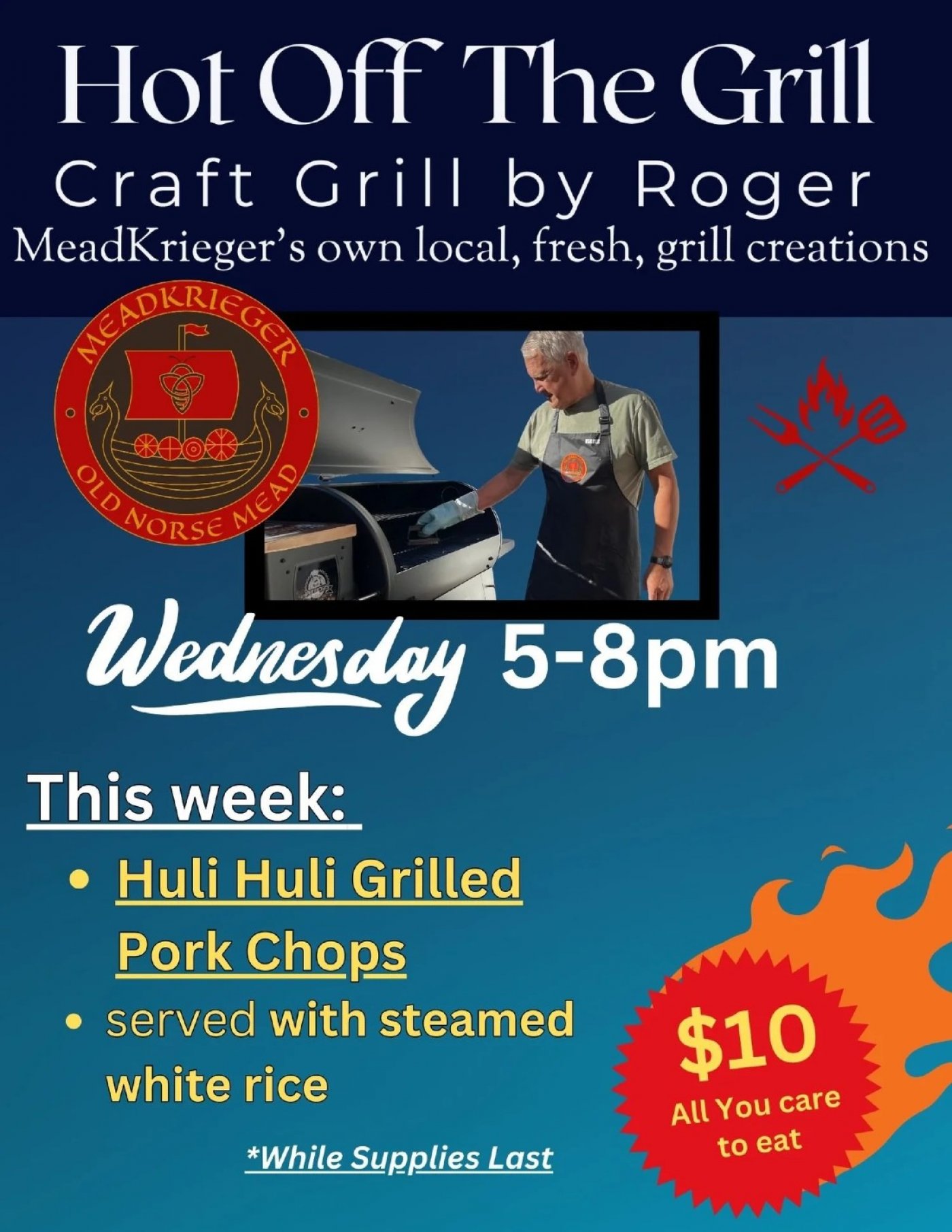 Roger is firing up the grill for all-you-care-to-eat BBQ!