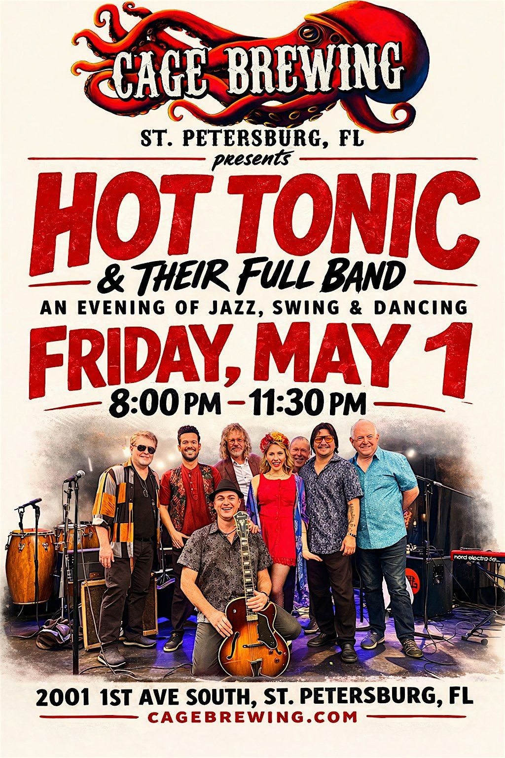 Get ready to groove with Hot Tonic & their full band live at Cage Brewing in St. Pete on Fri, May 1!About this Event
