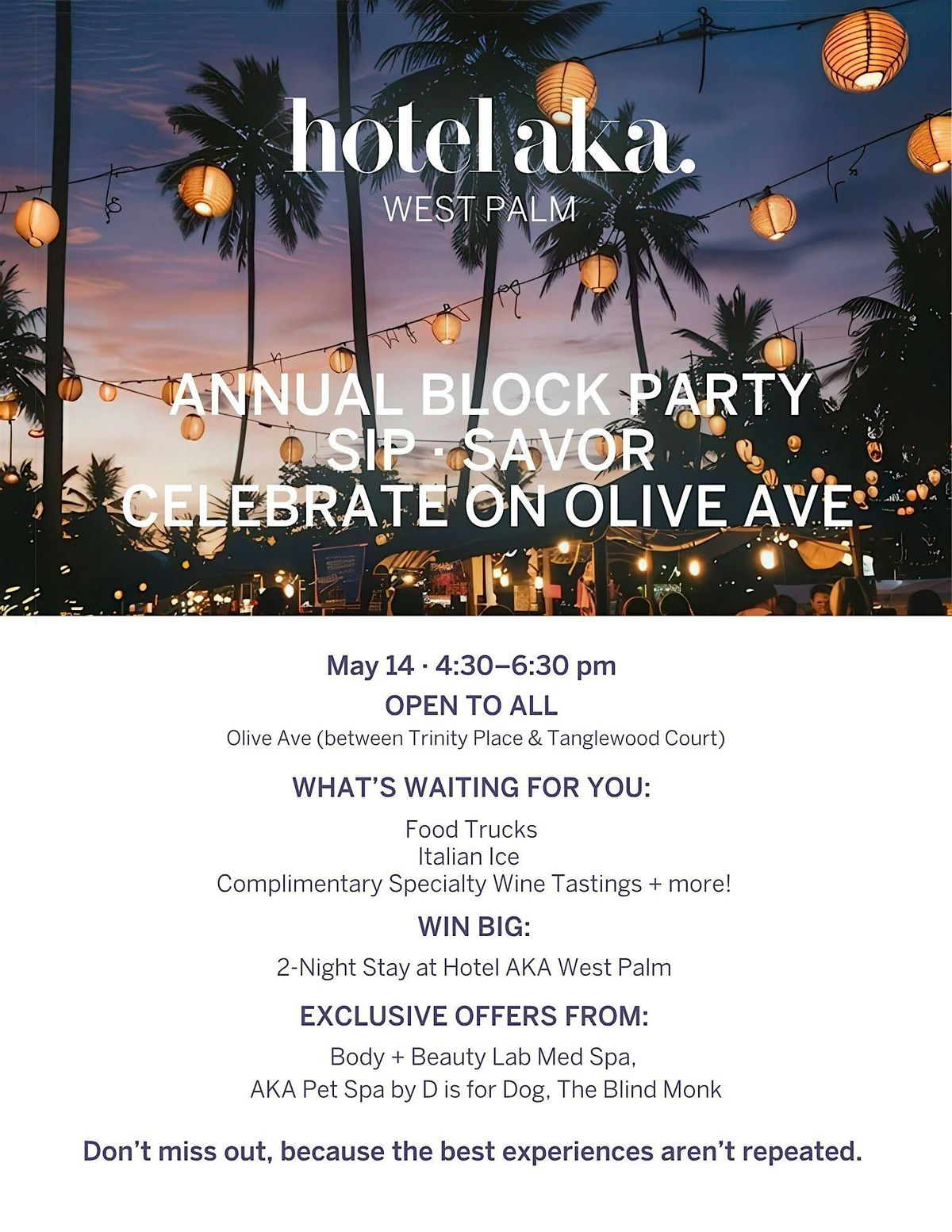 Don't miss out, because the best experiences aren’t repeated.