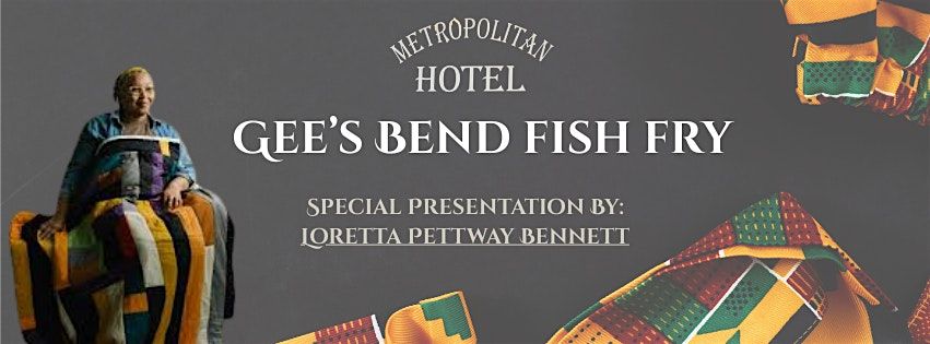 Join us at The Hotel Metropolitan on April 24, 2026 at 10:00 AM (Central Time) for a laid-back Gee's Bend Fish Fry of Hand-breaded Fried Fish, with home-cooked White beans, cole slaw, cornbread, and sweet tea. At 10am- 11am a ZOOM session will be held with Lorretta Petway Bennett of Gee's Bend, during the fish fry. Come soak in a fun, friendly vibe. Don’t miss out on this tasty and chill event—see you there!