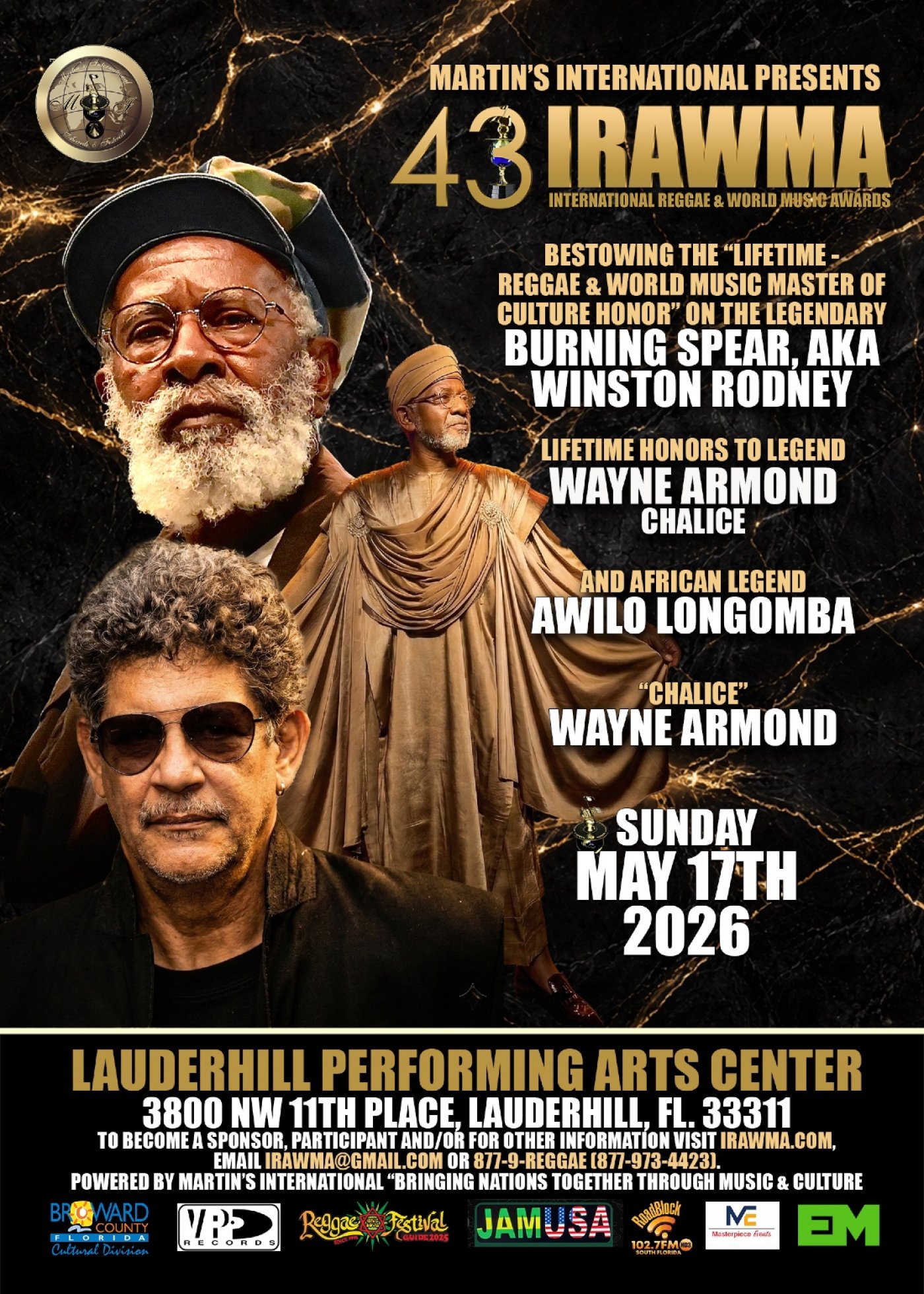 V-VIP Tickets to the 43rd International Reggae and World Music Awards (IRAWMA) CEREMONY
