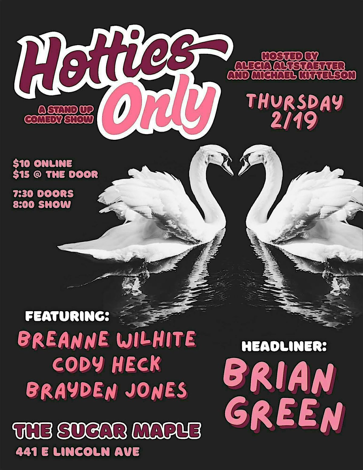 Hotties Only Standup Comedy presents a night of standup comedy featuring the hottest comics in the Midwest (Milwaukee, Madison, Chicago, and more)! It all takes place in the back room of the Sugar Maple!