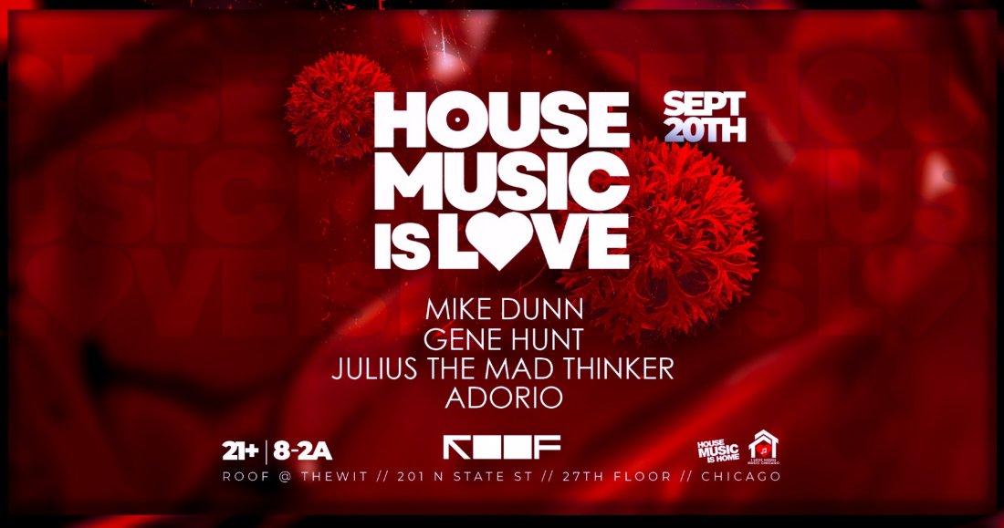 House Music is Love returns at a new venue. Chosen Fews Mike Dunn Gene Hunt Julius The Mad Thinker and Adorio DJ at Roof at The Wit from 8pm-2am as we will be dancing in the sky on the 27th floor.