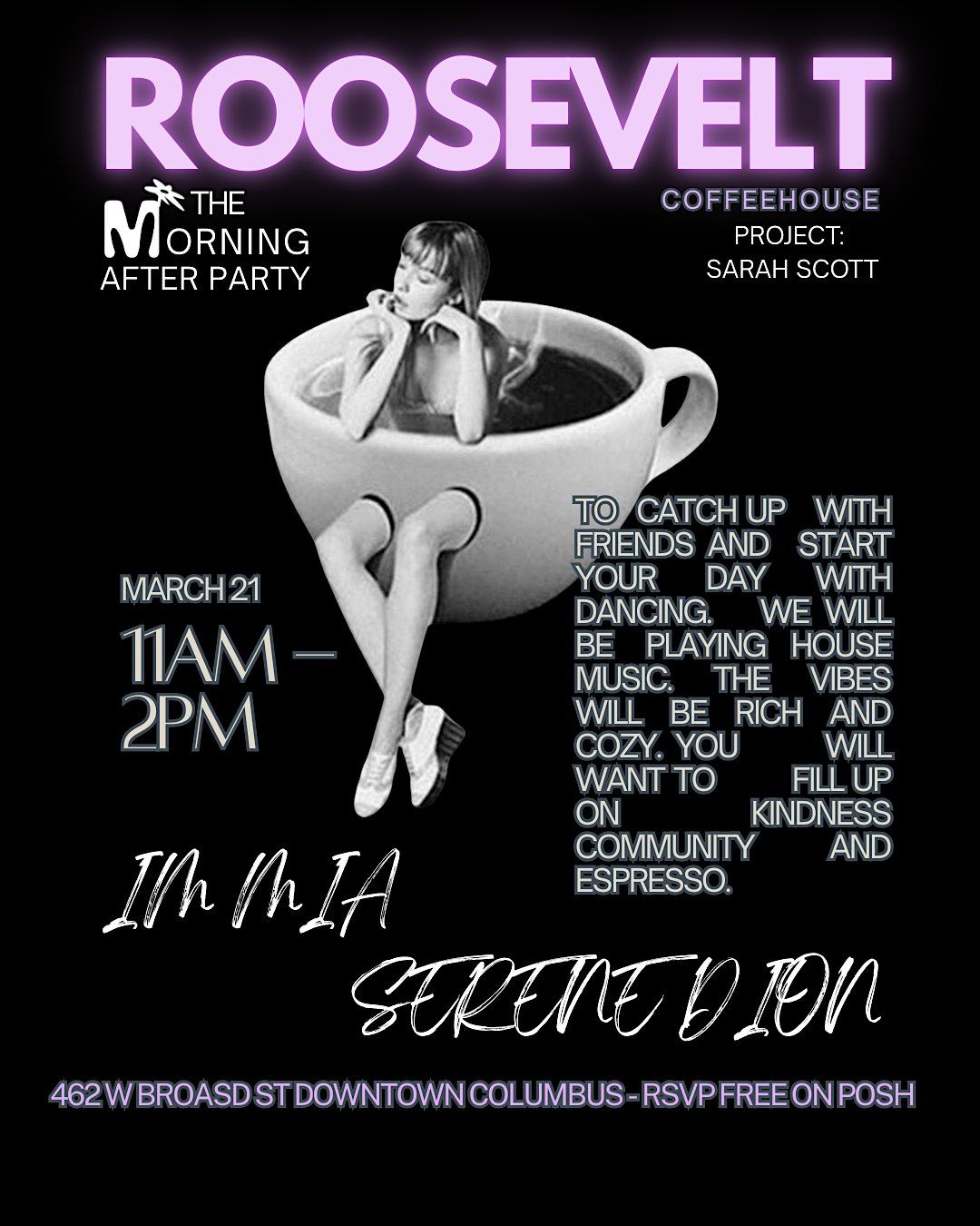 The Roosevelt Coffeehouse transforms into a day party! The perfect addition to your Saturday morning routine. Get some coffee and take an opportunity to catch up with your friends.