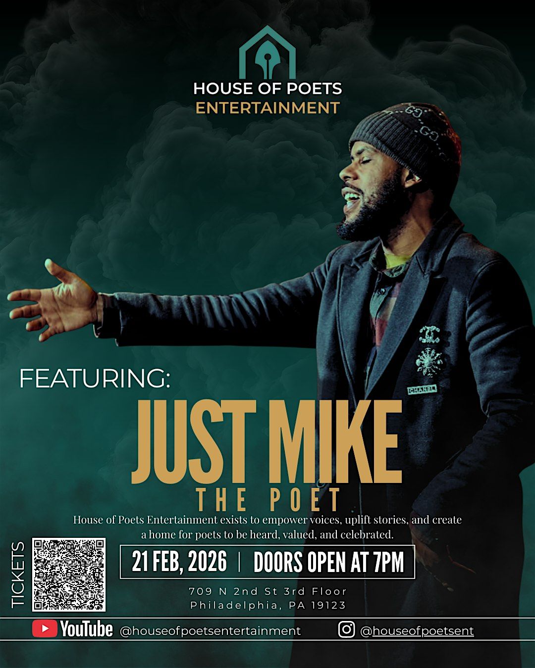 Get ready for an unforgettable in-person experiance where words come alive! HOUSE OF POETS is a full service entertainment company for poets & the art of poetry. Whether you're a seasoned poet, just starting out or just curious, this event promises a chill atmosphere filled with inspiration and cool people. Don't miss out on the chance to connect, create, and celebrate the power of poetry together!