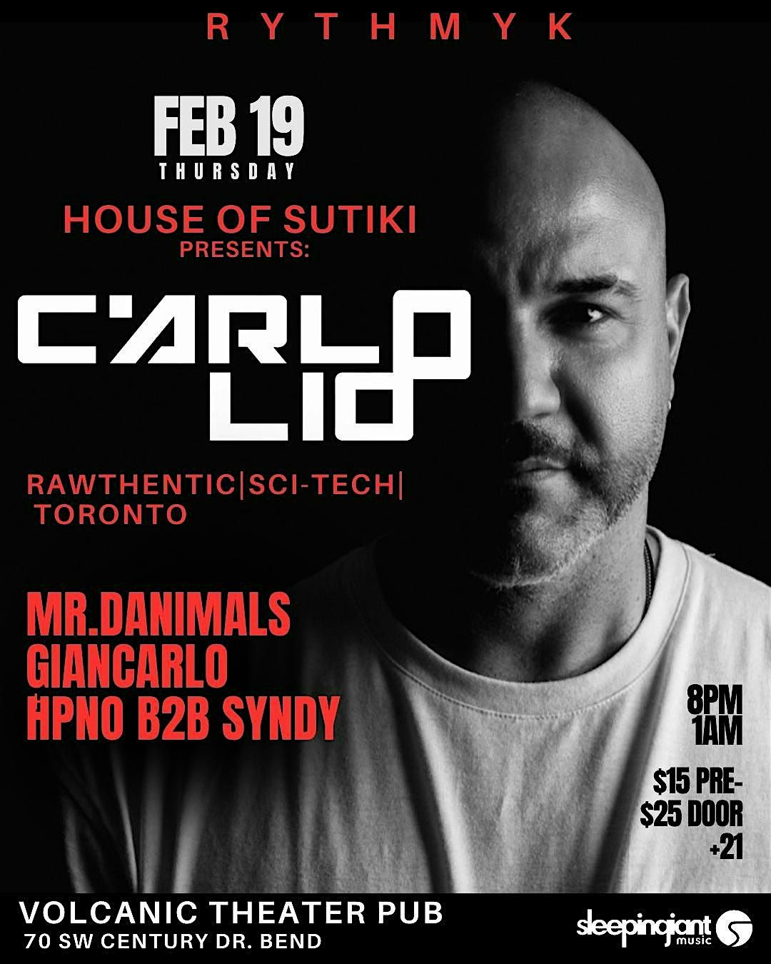 International tech-house star DJ CARLO LIO (Toronto) at Volcanic Theater Pub. Bend, OR
