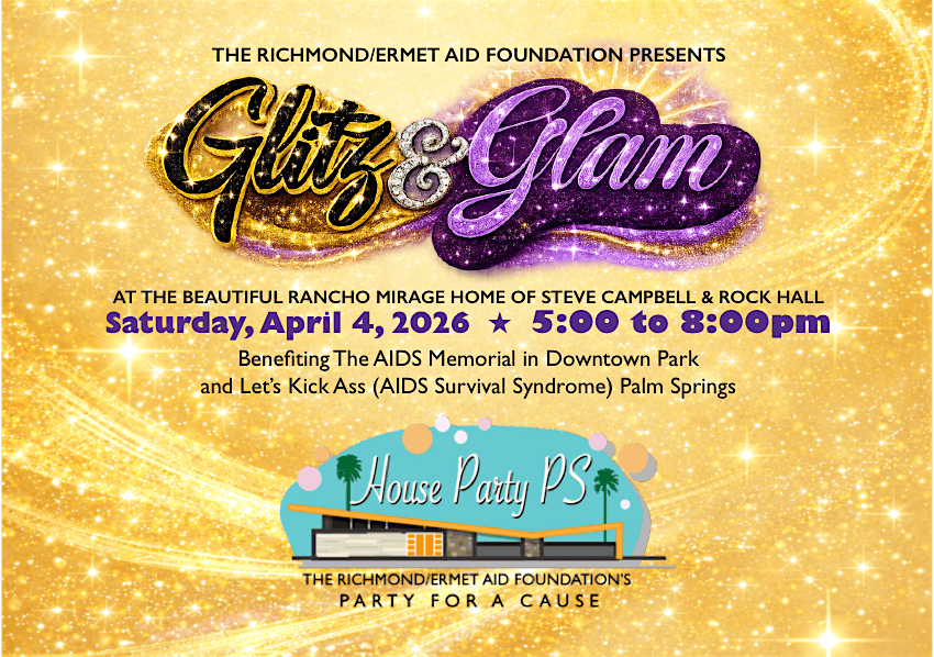 The Richmond/Ermet Aid Foundation, in association with Steve Campbell and Rock Hall, proudly presents House Party PS: Glitz & Glam — an unforgettable night of sparkle, style, and impact — benefiting the AIDS Memorial Installation at Downtown Park Palm Springs. A portion of proceeds will also support Let’s Kick ASS (AIDS Survivor Syndrome) Palm Springs.