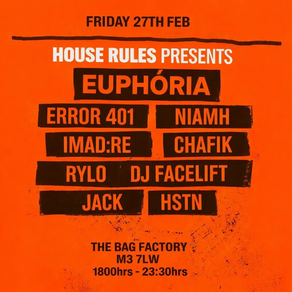 House Rules returns with EUPHORIA!An intimate night focused on hard house, trance and eurodance.