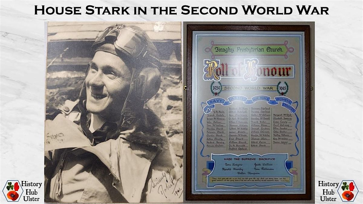 Four members of the Stark family of North Belfast and Finaghy served in the Second World War and are commemorated on the Roll of Honour for Lowe Memorial Presbyterian Church in Finaghy. Whilst reference will be made to all of them, the talk will focus on the war history of Flying Officer Robert Henry Stark (Royal Air Force Volunteer Reserve) who donated a record of his war service with PRONI in the 1980s. Rob Stark maintained a meticulous and detailed account of his war service and the PRONI record fills an A4 lever-arch file. The talk will be introduced by a PRONI member of staff, who will provide an overview of the file and highlight one or two items of particular interest. The remainder of the talk will be a presentation by Nigel Henderson of History Hub Ulster, giving an overview of the Stark family and then outlining Rob Stark's war service.