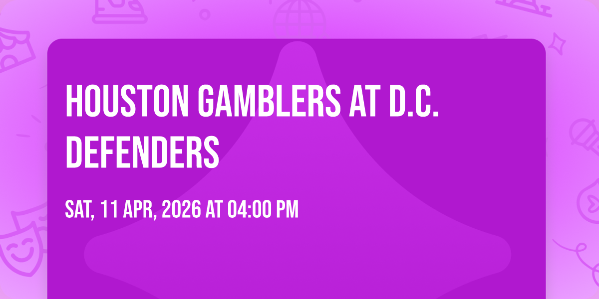 📍 Location: 38.8687, -77.0129✨ Discover the extraordinary at Houston Gamblers at D.C. Defenders, where magic meets reality in ways you've never imagined! 🏛️ Set in Audi Field nestled in bustling Washington, DC, this event promises to be a landmark occasion. 📅 Taking place on April 11th, 2026 at 04:00 PM, it's going to create an atmosphere where every moment becomes a cherished memory. 🌟 Immerse yourself in an experience crafted with attention to every detail, designed to surprise and delight at every turn. They have worked tirelessly to ensure this event exceeds all expectations, bringing together elements of entertainment, innovation, and pure joy. 🎊 Don't miss your chance to be part of this remarkable journey!