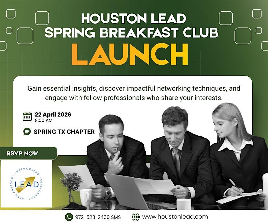 JOIN US for the launch of our Spring Breakfast Club where we’re gathering with purpose.Professionals, entrepreneurs, and leaders across Houston are coming together to build something meaningful—and you’re invited to be part of it.
