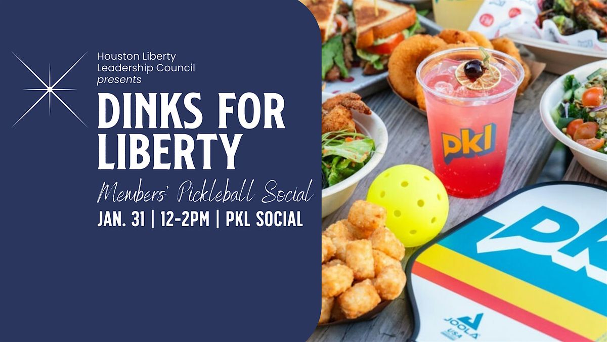 Members of the Houston Liberty Leadership Council* and their guest are invited to “Dinks for Liberty” Members' Pickleball Social on Saturday, January 31 at PKL Social. Join us for a fun afternoon of pickleball, community, drinks, and food!