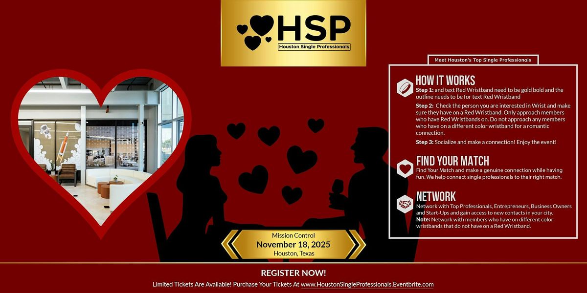 Welcome to (HSP). Join us as we celebrate Houston Single Professionals. The night will feature Free Food, Free Drinks and a Raffle Drawing with $1000 in Raffle Prizes. Invite all your single colleagues to come socialize and meet with Houston's Top Single Professionals, Entrepreneurs and Business Owners on Tuesday, November 18 at Mission Control Offices from 6-9pm.