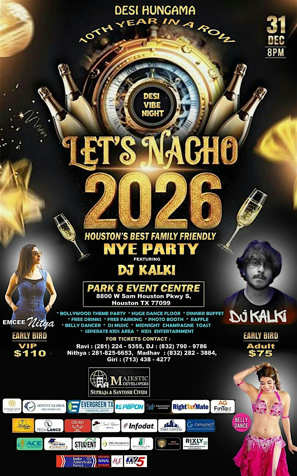 Desi Hungama (10th Year in a Row ) will be hosting biggest new year event with Bollywood theme at Park8 Event Center Beltway8 & Bissonnet